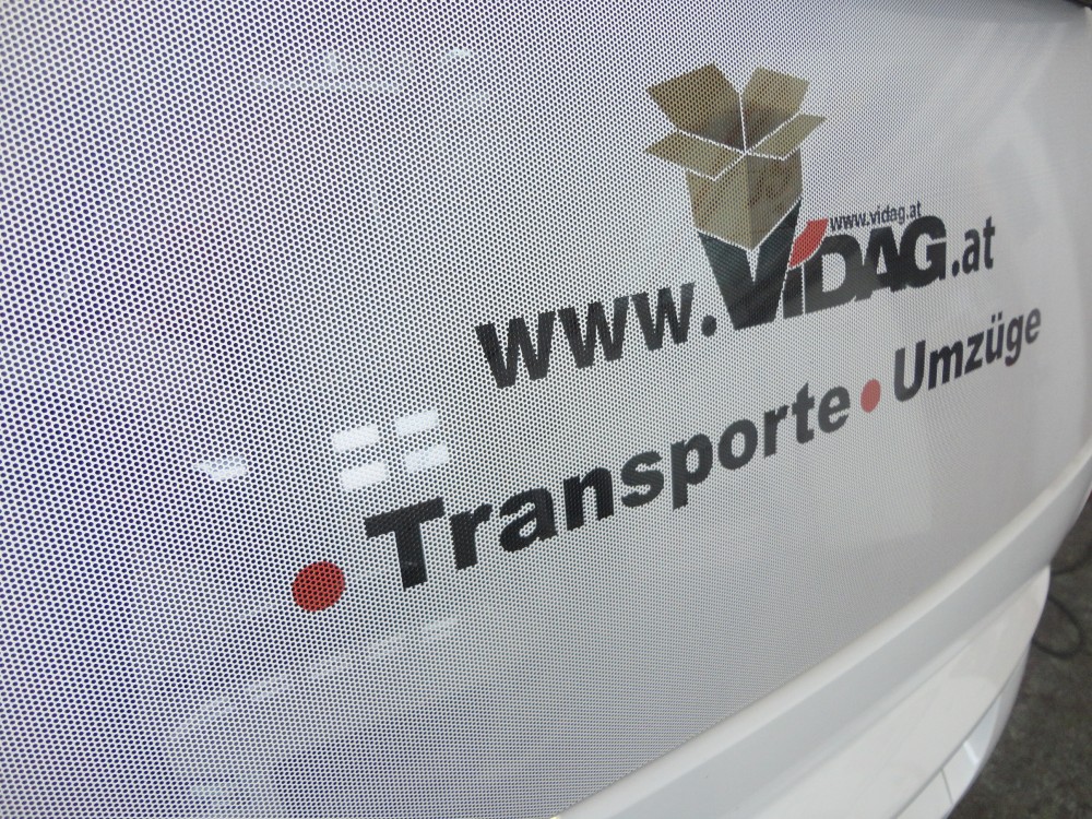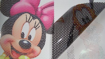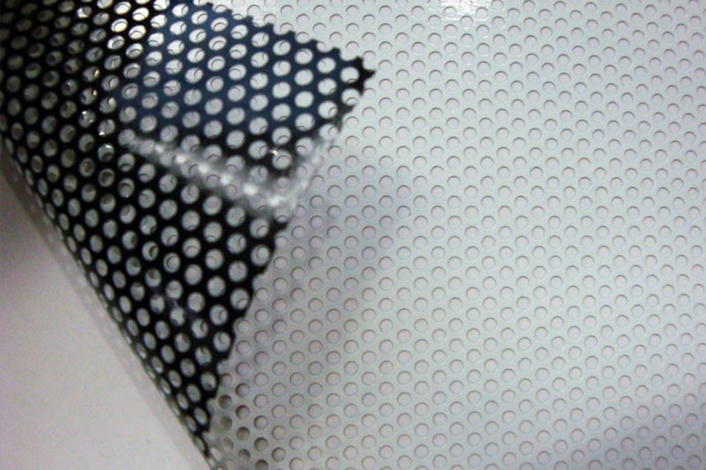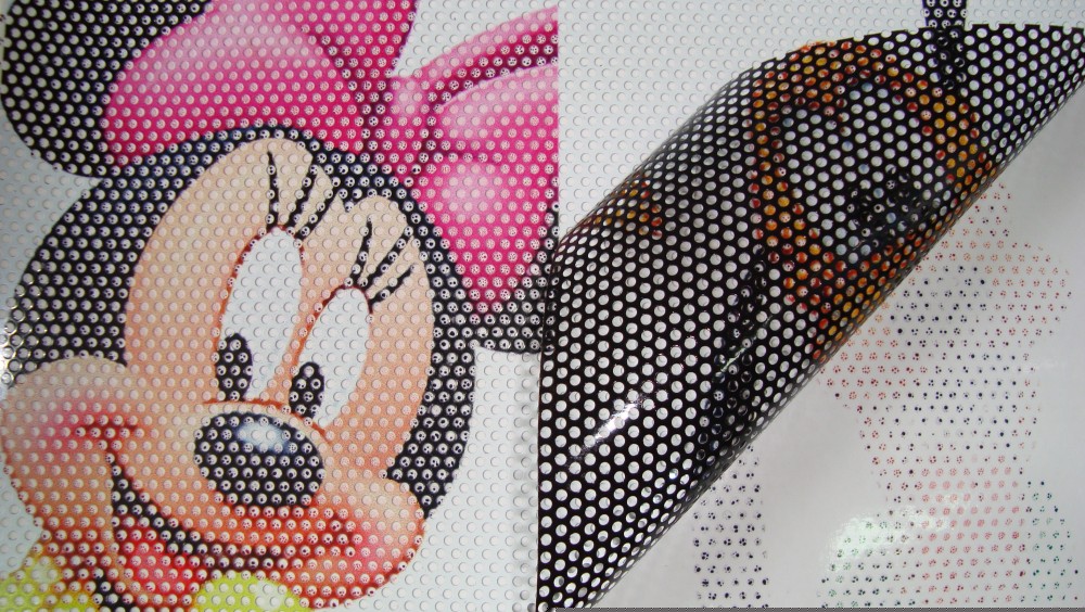 - Lochfolien auf Fenster von Autos oder Autobusse welches ein uneingeschränktes Hinausblicken ermöglichen
