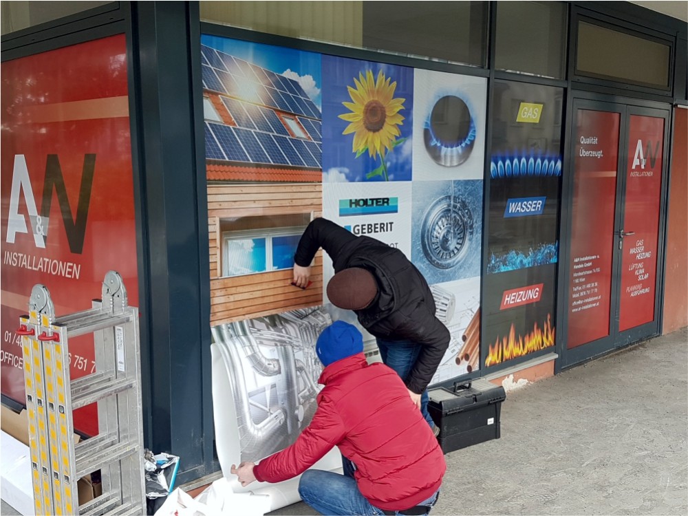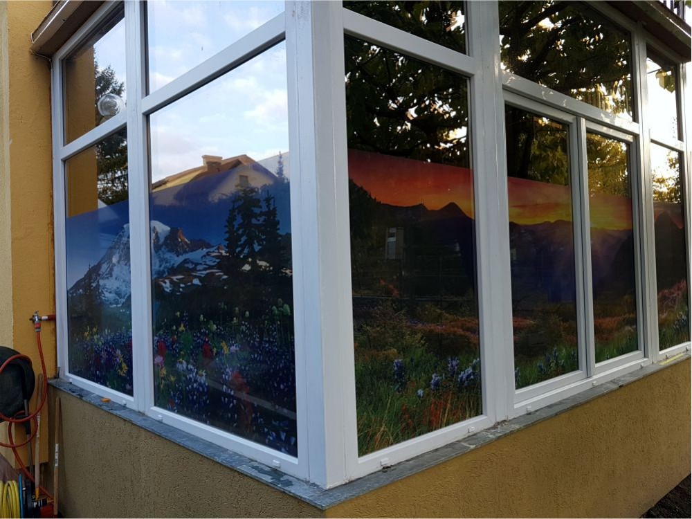 Die für Fenster gedruckten Aufkleber weisen eine sehr hohe Qualität auf wodurch sehr komplexe und detailreiche Bilder großflächig erzeugt werden können.