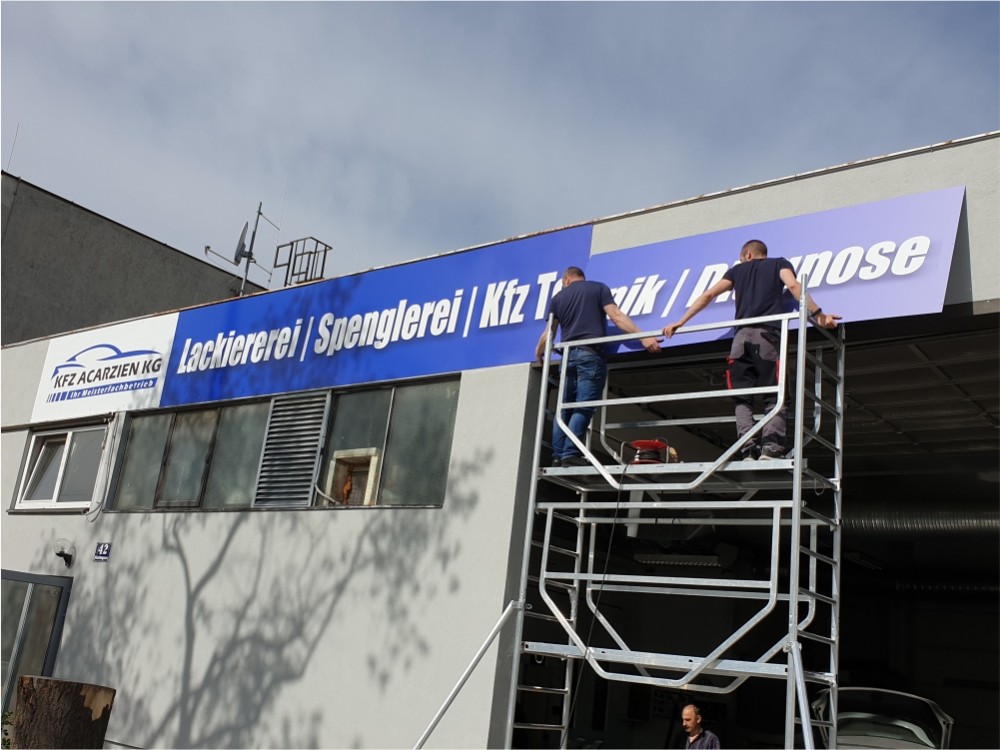 Ob einzelnes Firmenschild, großformatige Werbetafel oder individuelles Leitsystem – wir realisieren jedes Projekt passgenau und in bester Qualität.